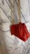 Dark red small woven crossbody handbag. Chain strap that can be doubles and worn as a shoulder bag.