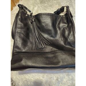 Sondra Roberts Squared soft black leather shoulder bag with silvertone hardware.