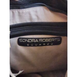 Sondra Roberts Squared black leather shoulder bag with silvertone hardware. Measures approx 12 wide x 12 high x 5 deep with 12 drop