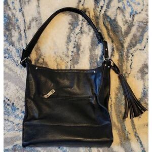 Sondra Roberts Squared soft black leather shoulder bag with silvertone hardware.