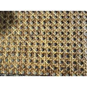 Unique design features a woven natural cane/rattan panel on the front, framed with faux snakeskin-style material in a neutral brown and black pattern.
