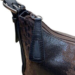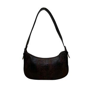 Sondra Roberts Women’s Black & Brown Crocodile Embossed Leather Shoulder Bag