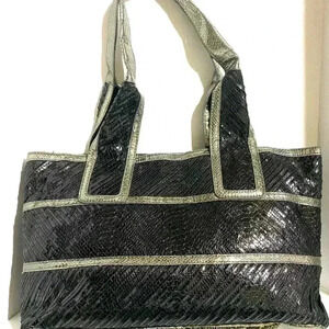 Sondra Roberts black silver snakeskin leather shoulder handbag