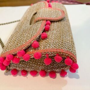 Sondra Roberts Raffia Wicker Handbag Pom Pom