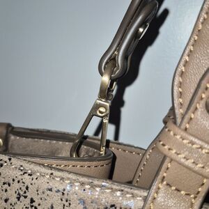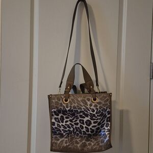 Sondra Roberts Squared Animal Print Taupe Crossbody Tote Bag