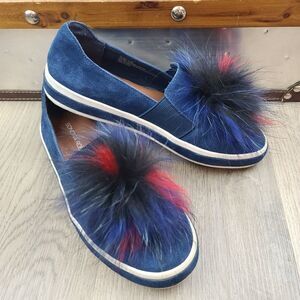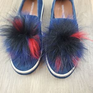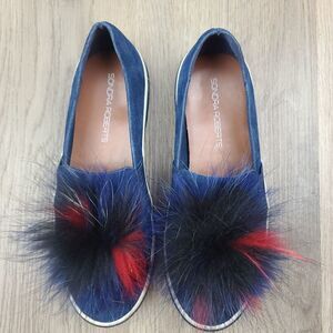 Sondra Roberts Romy Leather upper real fur trim slip on sneakers size 6.5