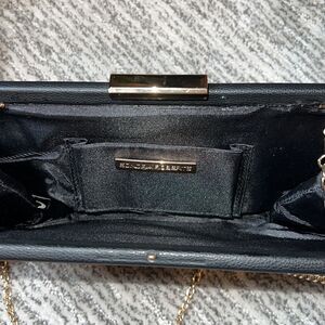 MSRP $312 Black leather clutch. Lock closure. Open pockets. Removable strap.