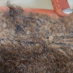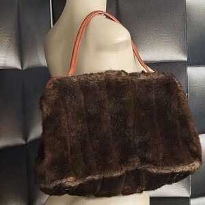 faux fur brown purse with leather strap. see pics for size. small blemish of fur see pic