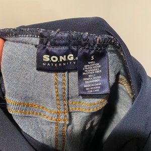 Song Maternity size Small distressed skinny jeans with elastic waist band. Preowned in perfect condition with no signs of wear, tear, or staining. Great for anyone who wants to look cute while growing a whole human inside them! Go you! Cotton, polester, spandex blend.