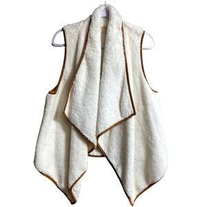 Song N Spirit Sherpa Tiered Layered Vest Large Cream White Brown Cozy