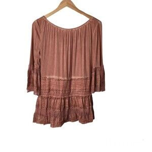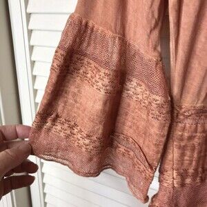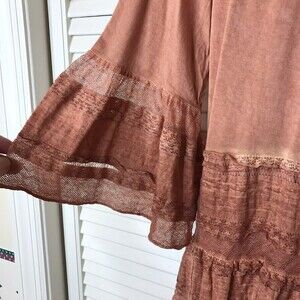 Song N Spirit Size S Boho Lace Tiered Pull On Top Bell Sleeve Rust Ombré Lined