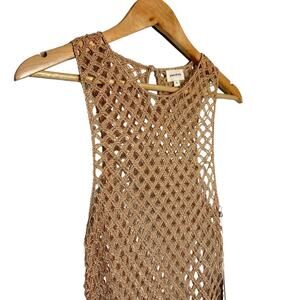 Song Of Style NEW Dani Crochet Fringe Sleeveless Sheer Cover Up Dress Tan XL