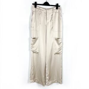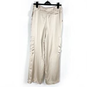 Song of Style Ayah Cargo Trousers Champagne Tan Pants Satin Straight Leg Sz S