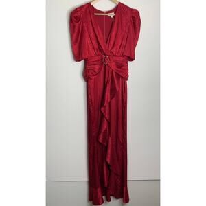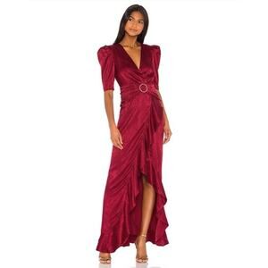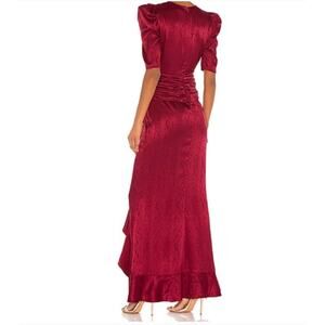 Song of Style Edwin Maxi Dress Cranberry Red Jacquard Puff Small New