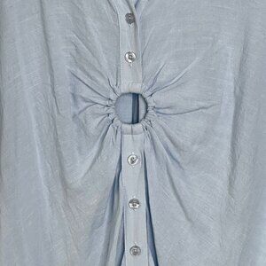 Song of Style Linen Blend Mini Dress Front Cutout Light Blue Size Small