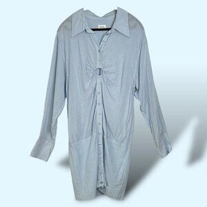 Song of Style Harmonee Linen Blend Mini Dress Front Cutout Light Blue Size Small - Preowned