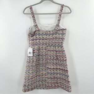 Song of Style NWT Trina Mini Dress in Rainbow Multi Tweed size XS, sold at Revolve. Sleeveless. Square neckline. Adjustable button closure shoulder straps. Allover tweed fabric. Front pleats on skirt. Hidden back zipper closure. Fully lined, New with tag attached.