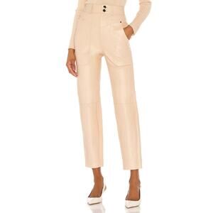 Song of Style Seana Leather Pant in Khaki. Size S / Small. Features zipper fly with button closure, 4-pocket design, leather fabrication, high rise, straight leg. Style SOSP19. 100% leather. Excellent condition. *Please note light wear on buttons.