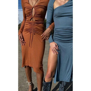 Song of Style Zuri Midi Cut Out Ruched Dress M NWT
