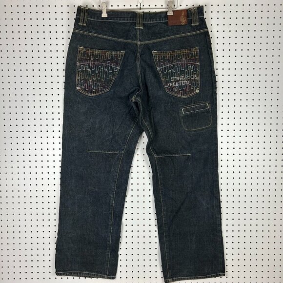 Songs of Freedom Dark Wash Baggy Jeans 40x33 Double Knee Stitched Stash Skater