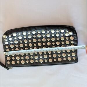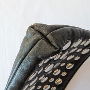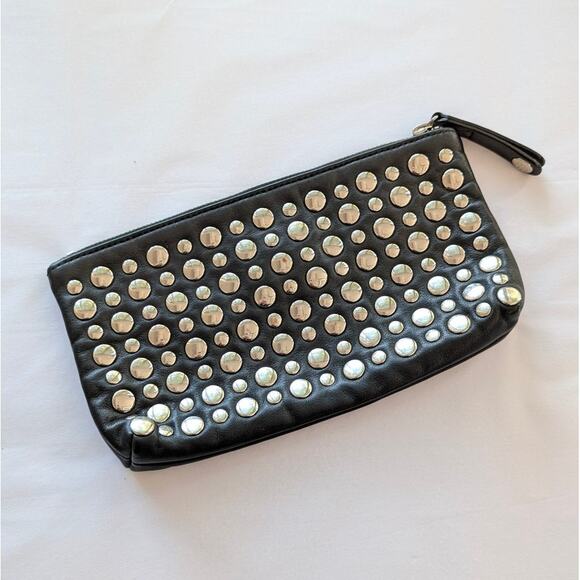 Sonia Rykiel Black Leather Silver Studs Zip Mini Bag Clutch