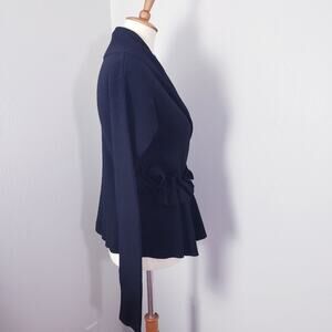 Sonia Rykiel Black Ribbed Wool Blend Knit Floral Ruffled Wrap Cardigan Sweater