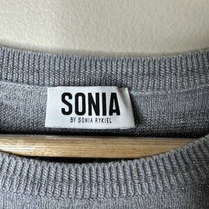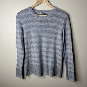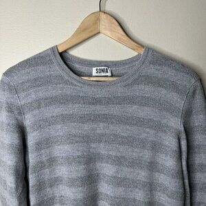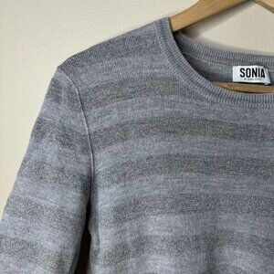 Sonia Rykiel Crewneck Sweater Womens XL Gray Silver Striped Sparkly Wool Blend