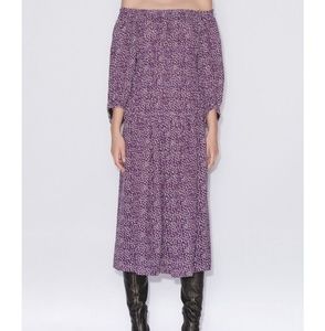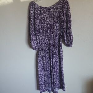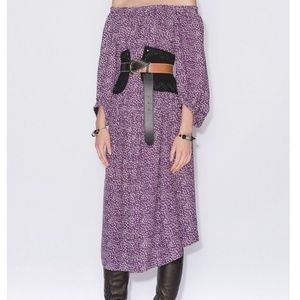 Beautiful off the shoulder 100% linen. 3/4 length sleeves. Elasticated cuffs. Elasticated waistline. Slips on. Unlined.