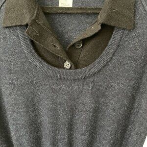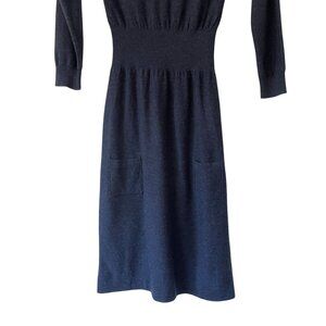 Sonia Rykiel Navy Merino Wool Long Sleeve Collared Sweater Dress Size S READ