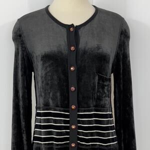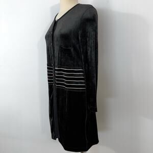 Sonia Rykiel Paris Long Duster Velvet Cardigan Button Up in Dark Gray L