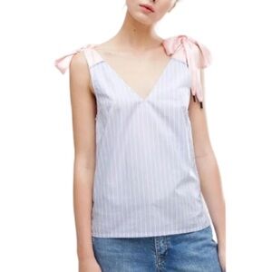 Sonia by Sonia Rykiel Shoulder Bow Tie Cami Tank Striped and Eyelet