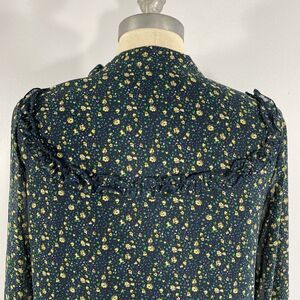 Sonic Youth Dress Long Sleeve Floral Print Mini Dress Tiered Ruffle V-Neck Small