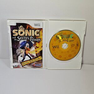 Experience the thrilling adventure of Sonic and the Secret Rings on your Wii. Featuring vibrant black and blue cover art, this game by promises hours of fun.