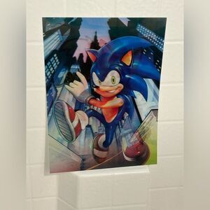 Level up your wall art with this stunning 3D lenticular “Sprinting Speedsters” Sonic print, featuring a dynamic triple-transition effect that brings Sonic’s legendary speed to life. With a sleek cityscape background and vibrant detail, this piece is a must-have for collectors and gamers alike. Features: Triple-transition 3D effect