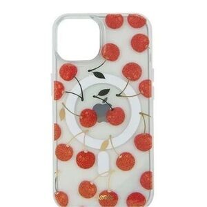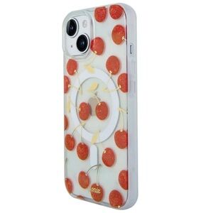 Clear case with red cherry pattern. Compatible with iPhone 13/14/15
