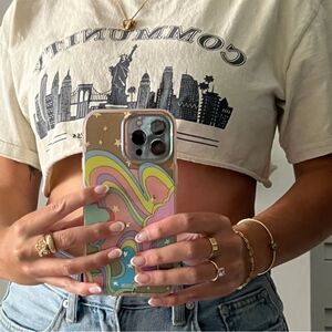 Stylish Sonix case with pink and blue swirl design. MagSafe compatible. Drop test certified for protection.