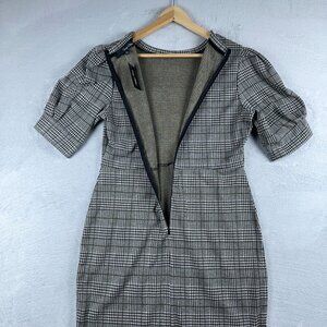 Sonja Betro Sheath Mini Dress Houndstooth Puff Sleeves Womens Gray Size X Large