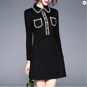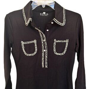 Sonja Morgan Black Collared Long Sleeve Buttoned Short Dress Size Large NWT