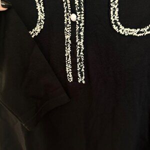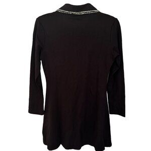 Sonja Morgan Black Collared Long Sleeve Mini Dress Beaded Trim, Size Large NWT