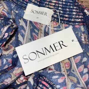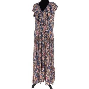 NWT Sonmer Womens Paisley Ruffled Smocked Neck Maxi Dress Multicolor Size Medium