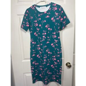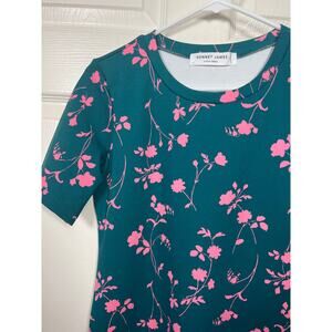 Sonnet James A Play Dress Short Sleeve Midi Teal Green with Pink Flower Pattern