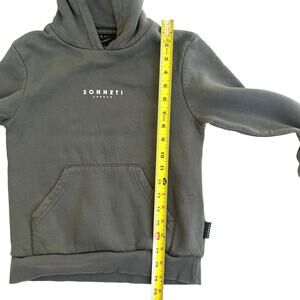 Size & Fit: Labeled “M” (Medium) from Sonneti’s Junior/kids line. Approximate flat measurements: 15″ (chest width) × 19″ (length) — best suited for a kid size 10-12. Please compare these numbers to the child’s current hoodie for best fit.