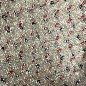 Sonni California Vintage Woven Pillbox Hat. Great pre-owned condition. White woven material with white mesh cover with red and dark blue accent flecks. Black and orange ribbon.