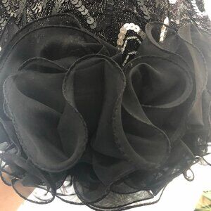 Elevate your ensemble with this stunning vintage Sonni San Francisco hat, exquisitely adorned with black and silver sequins, intricate beading, and a dramatic chiffon bow applique. Elegant and timeless, it’s the perfect accessory for special occasions or standout vintage styling.