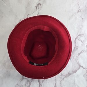 Sonnie San Francisco Hat Red Women Small Wool Wide Brim Fedora Packable Ribbon