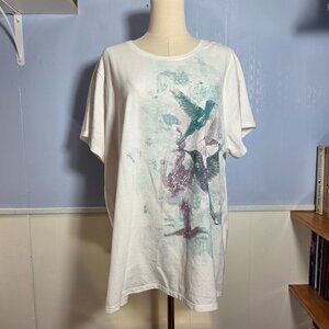 Sonoma 2x White Green Hummingbird Crewneck Shortsleeve Casual Summer T-Shirt