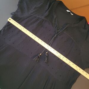 Item: women's long length short sleeve maxi dress, sort of an eyelet lace design up top and features a v-neck with drawstring tassel, plus size 2X and originally $52
