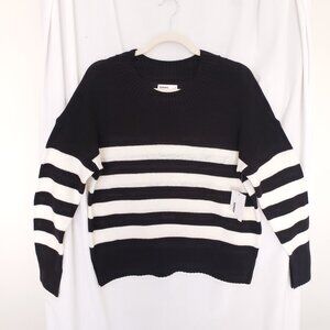 Sonoma Black n White Striped Knit Preppy Long Sleeve Sweater Size S