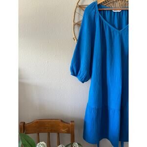 Sonoma Blue Gauze Muslin Flowy Dress/Tunic w/ Waist Belt Tie Pockets Sz LARGE