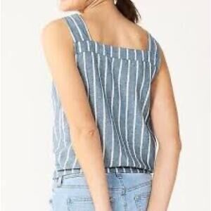 Sonoma Blue and White Sleeveless Buttoned Tank Top